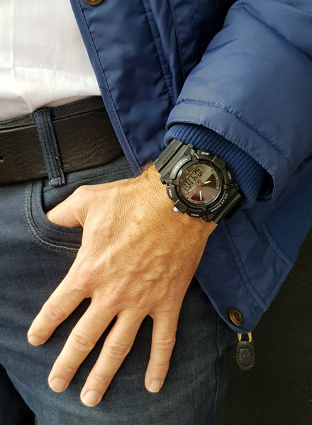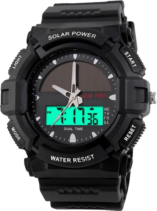 Digitaal zonnecel horloge met EL nachtlicht, dualtime, weekaanduiding, alarm